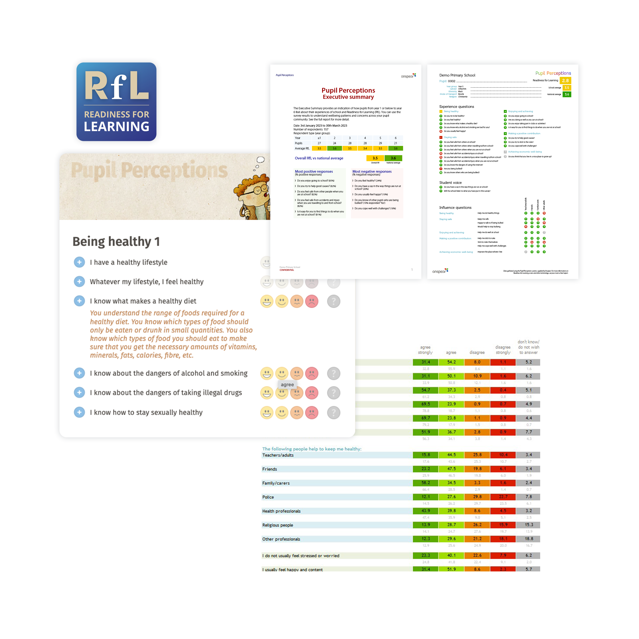 Readiness for Learning (RfL) is a single score calculated from the responses each child gives to the survey. It provides an overall indication of their wellbeing and preparedness for academic progress. RfL is designed to be a quick way to identify pupils who may require intervention.