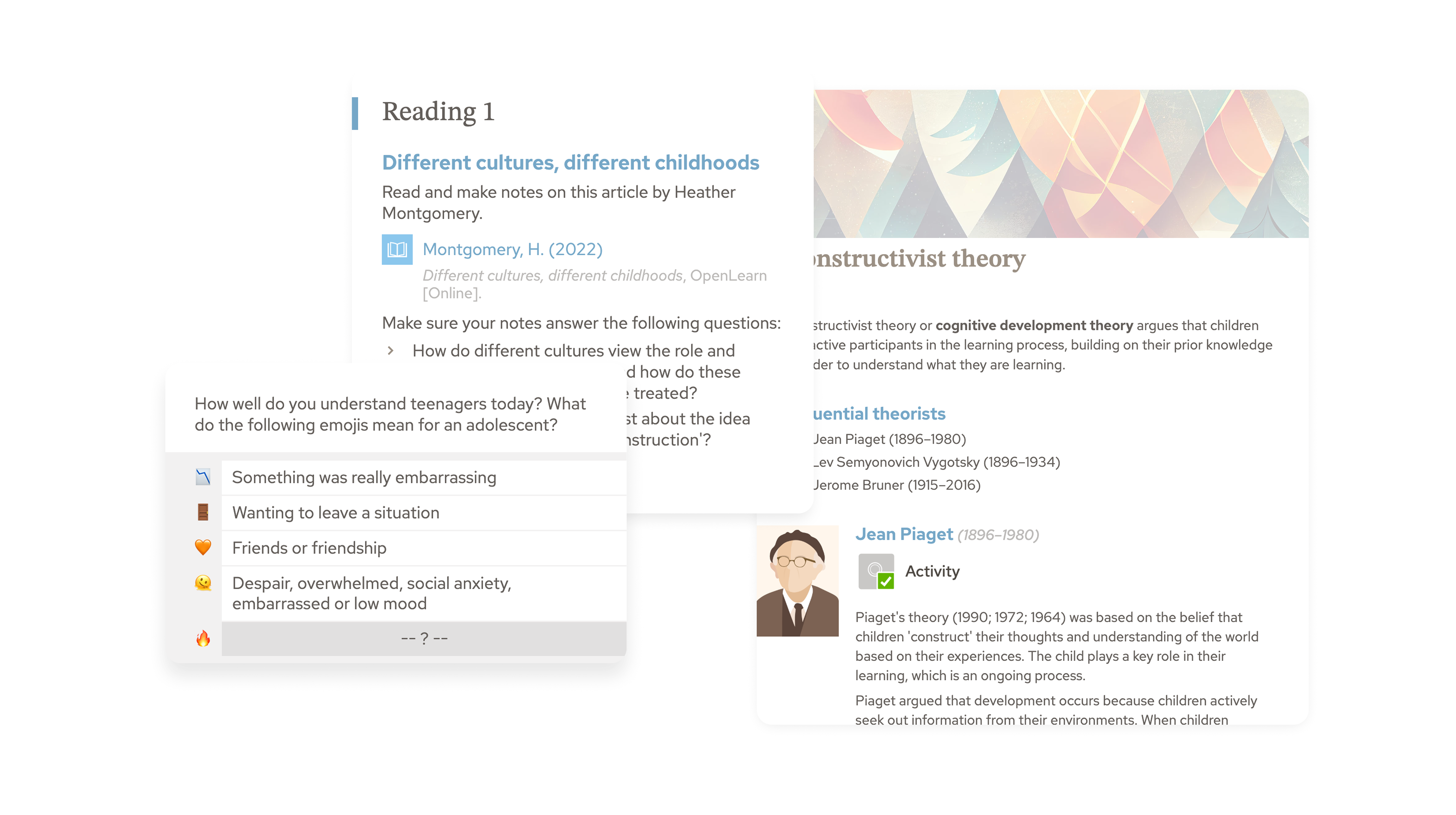 We champion active learning – where students engage by thinking, writing and doing. Our technology enables instant, formative feedback on writing exercises throughout each course, ensuring learners are never far from the encouragement and guidance they need to progress.